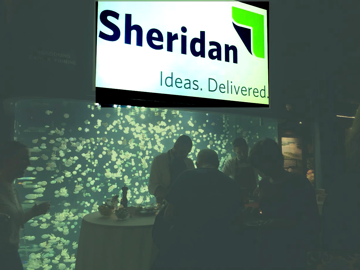 “Dolphins and sea otters made merry in a pool outside the Sheridan Group reception at the Vancouver Aquarium, while we noshed and drank with the fishes inside. But the food rivalled the undersea sights. A very nice gentleman with an ice cream scoop filled a parfait glass with a perfectly round dollop of mashed potatoes and told me to help myself to toppings. Shut the front door! I got the works. Delicious creamy mashed (whipped) potatoes of a perfect consistency, a ladle full of warm brown gravy topped with a generous sprinkle of finely sliced green onions (scallions), and a healthy spray of large, crispy bacon pieces!! It looked like a sundae … that you eat with a fork!!”